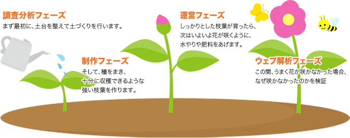 ホームページをつかったマーケティング手法は、花や木を育てる手順に似ています。